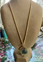 美しいダックスフンドの横顔を刻印したメダルをあしらった18金コーティングのペンダントネックレスです。